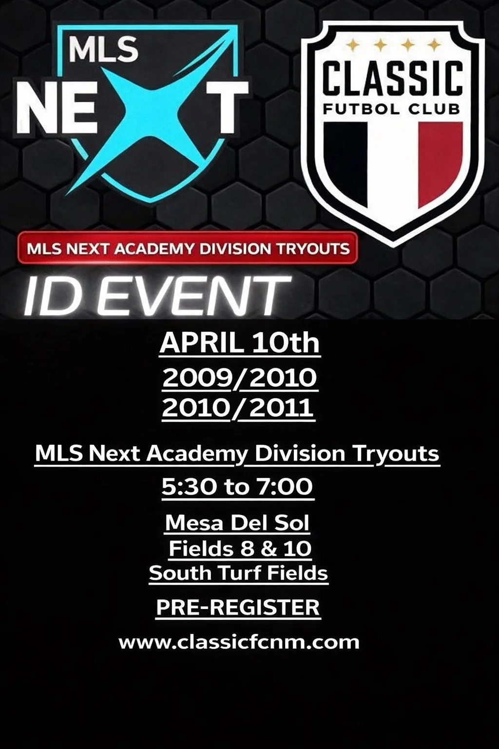 Join us on this historic journey! Tryouts for MLS NEXT teams will be announced soon. Stay tuned for more details on how to become part of the Classic FC legacy.